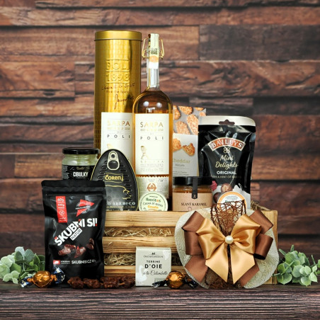 Luxusní dárkový koš pro muže s Grappou Sarpa Barrique di Poli 0,7l obsahuje: