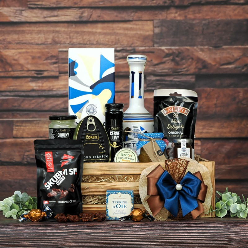 Luxusní dárkový koš s Metaxou Grande Fine 40% 0,7l obsahuje: